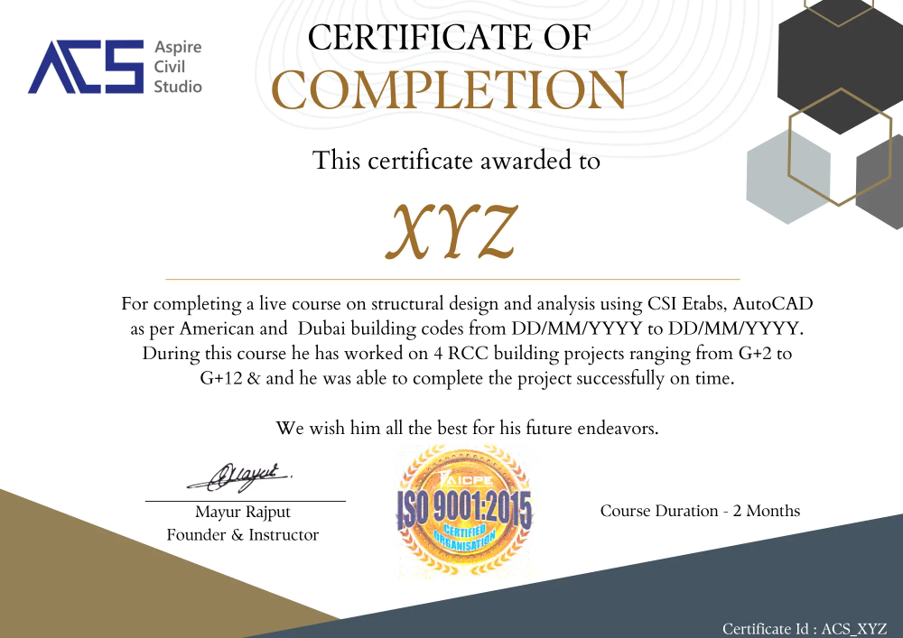 The Etabs course provided me with a solid foundation in reinforced concrete design and dynamic analysis. I gained a deep understanding of ACI and Dubai building codes that I can apply to real projects. The expert instructors were very supportive throughout the course."